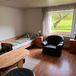 דירת Fronhausen Ferienwohnungen Im Hirschgrund מתפארת בנופים של גינה, וממוקמת בסביבות ה-3.4 ק"מ על Evangelische Kirche Dexbach.